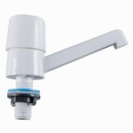 Torneiras plásticas de rosca e bica longa.